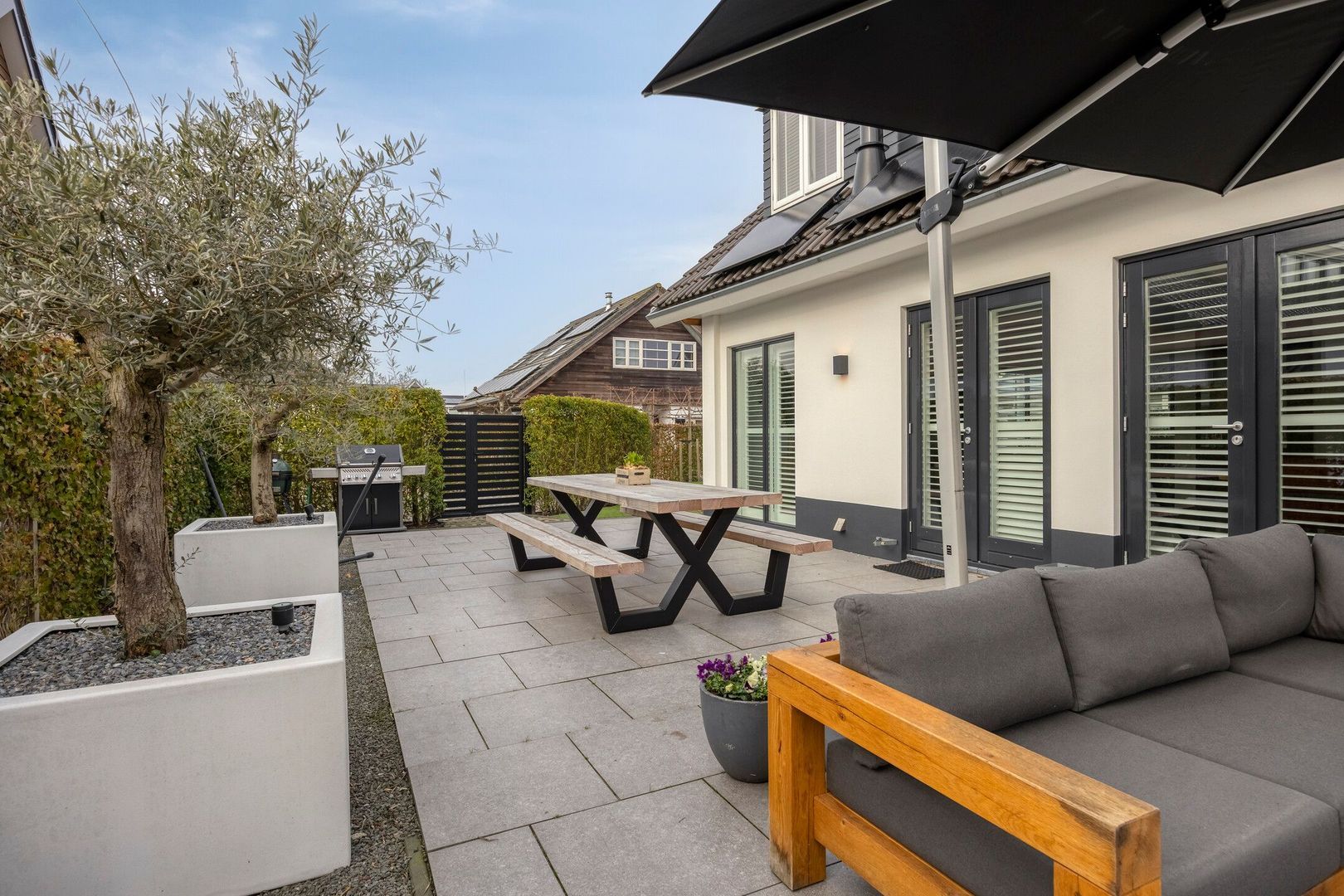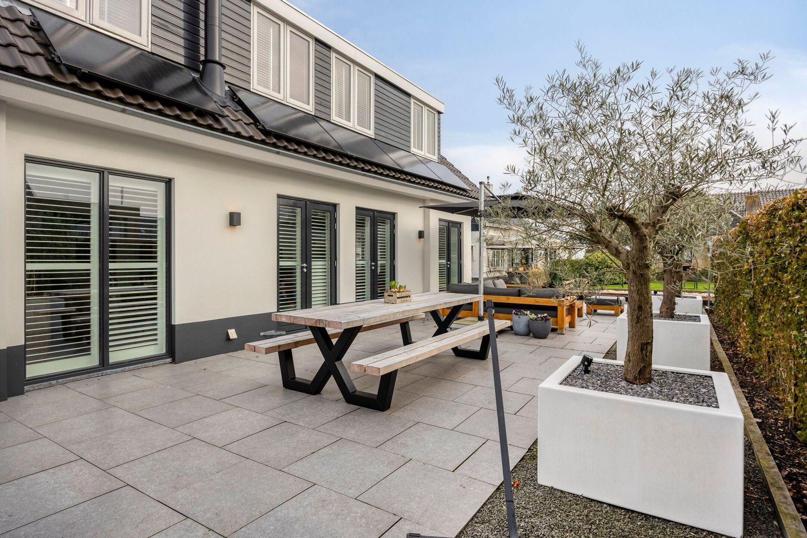 Er zijn diverse terrassen aangelegd. Alle terrassen zijn nieuw aangelegd met aantrekkelijke plantenbakken met olijfbomen. U kunt op elk moment van de dag van de zon genieten.