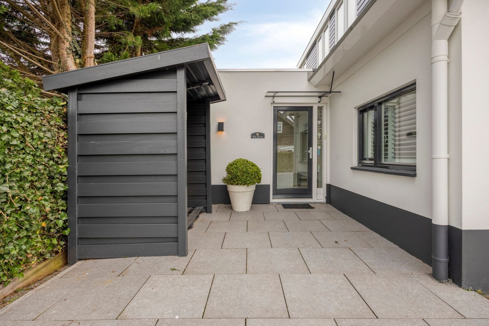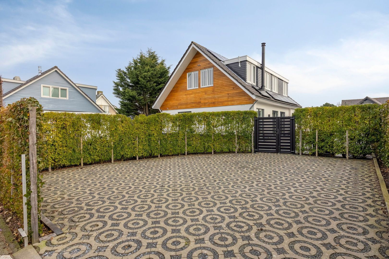 Een heerlijk huis met ruime tuin, eigen oprit met parkeerplek voor meerdere auto,s, hekwerk met looppoort. Buitenberging voor opslag fietsen en tuinmaterialen. Opslagoverkapping voor haardhout bij de entree.