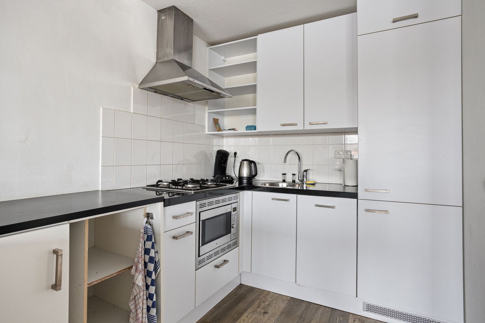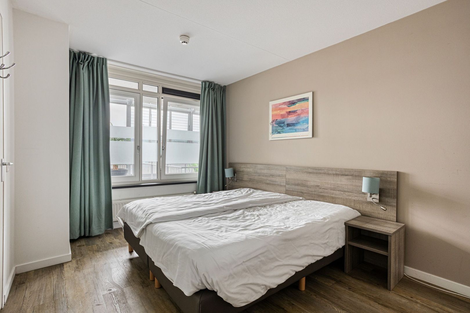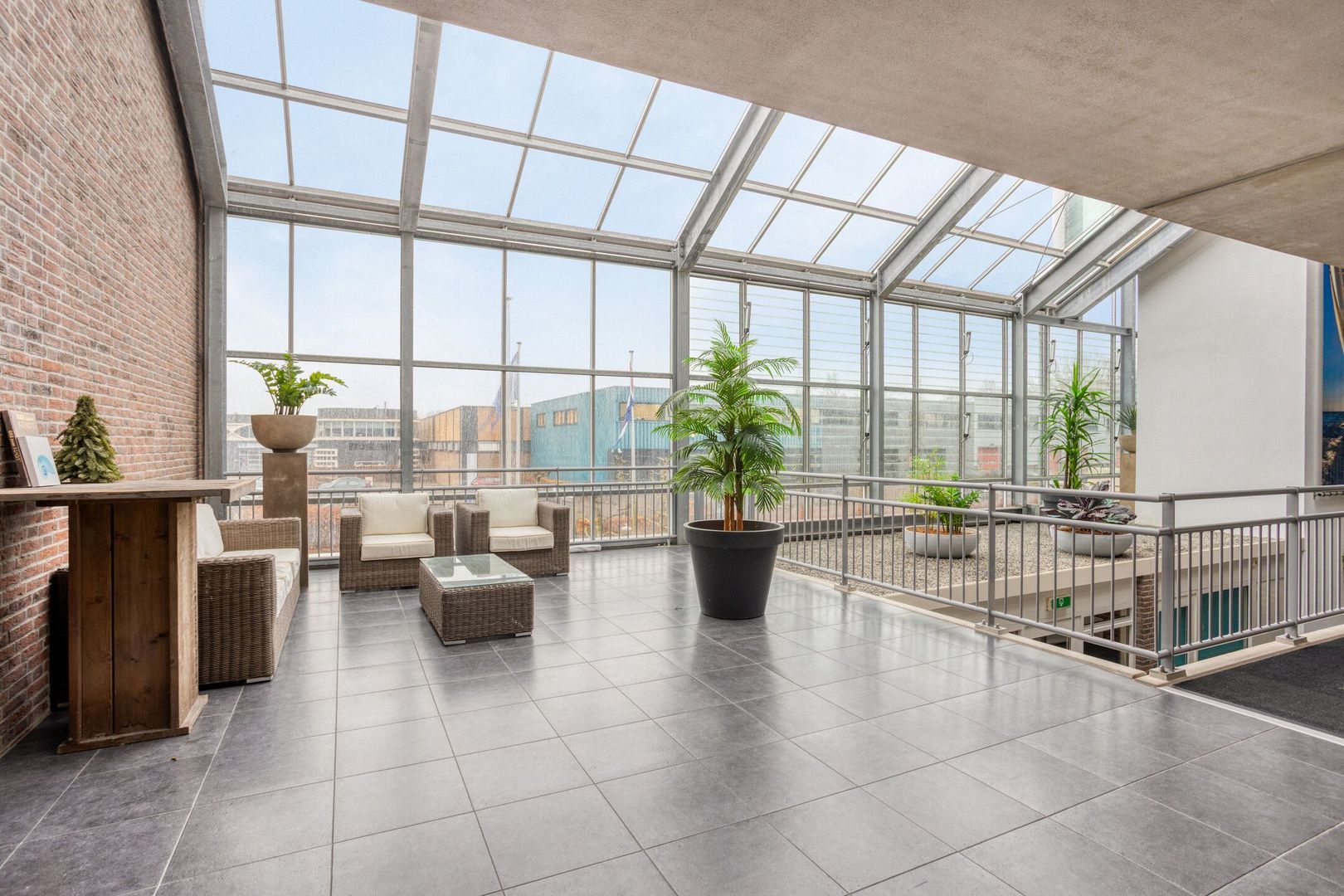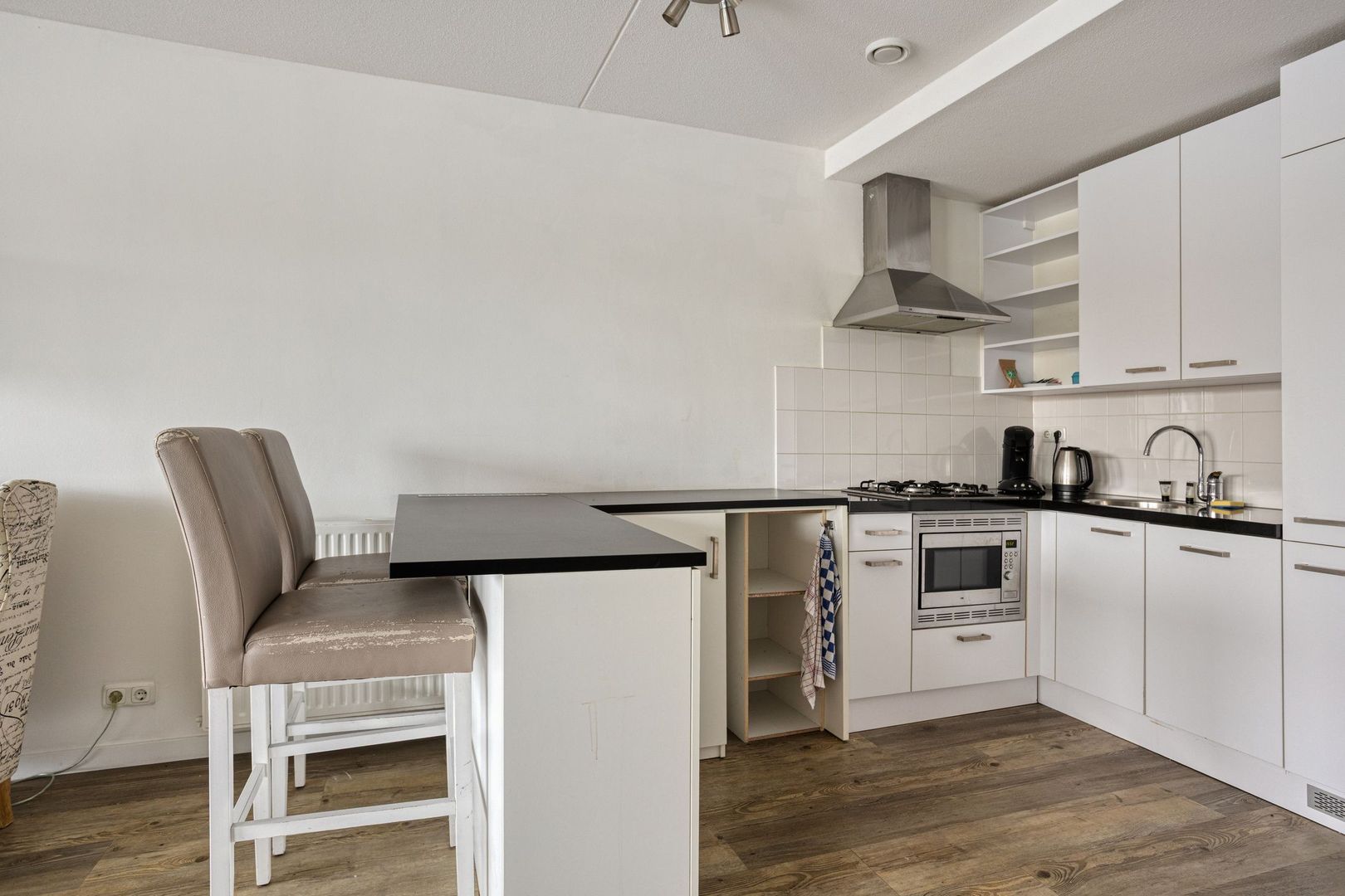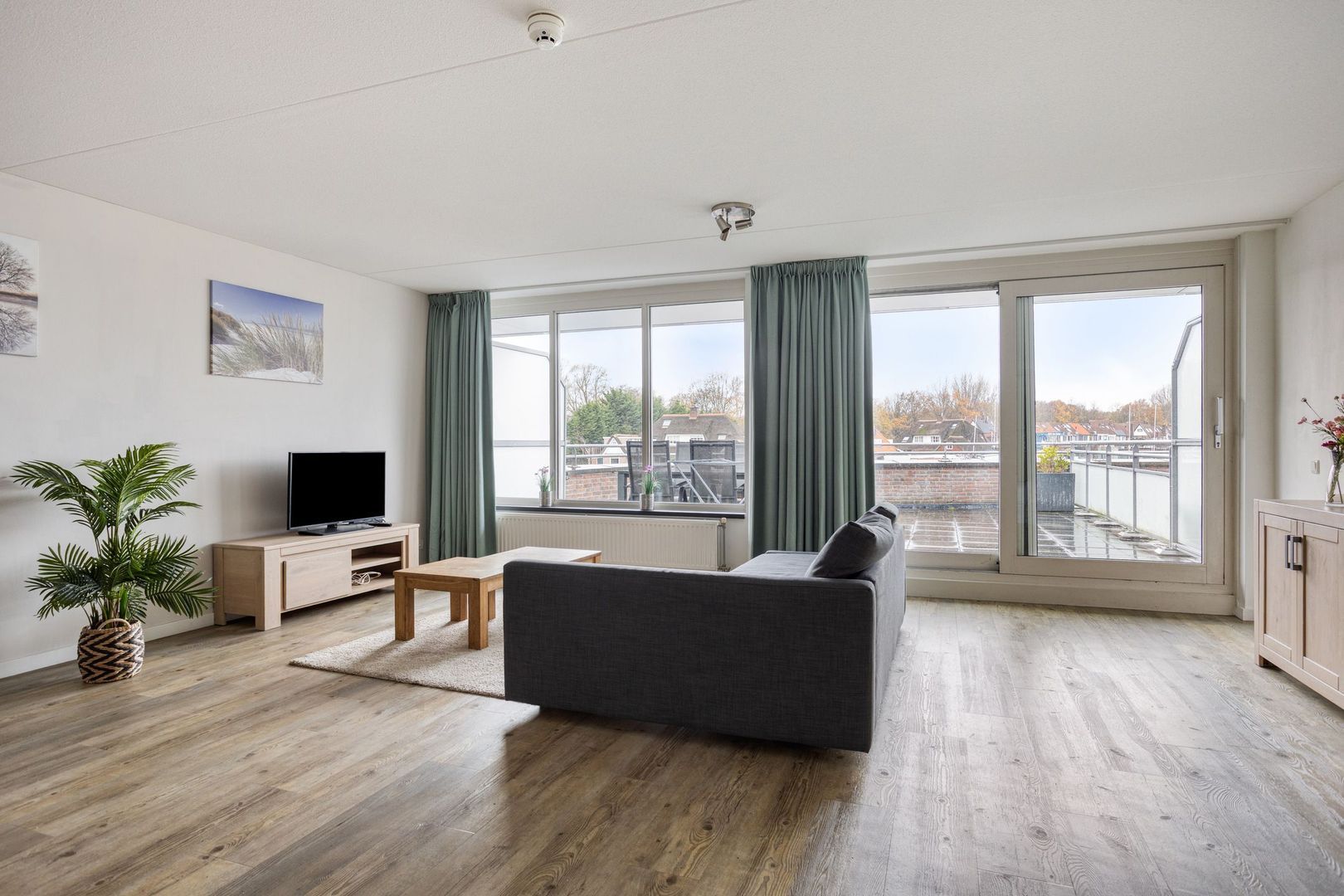 Het appartement kijkt uit op de jachthaven en de Leede. Aan deze zijde bevindt zich een groot dakterras. Het appartement telt drie kamers, waarvan twee slaapkamers.