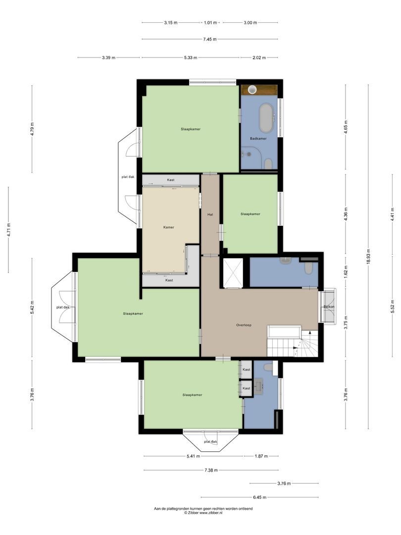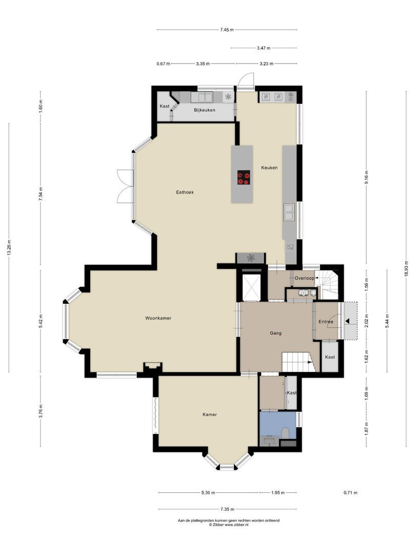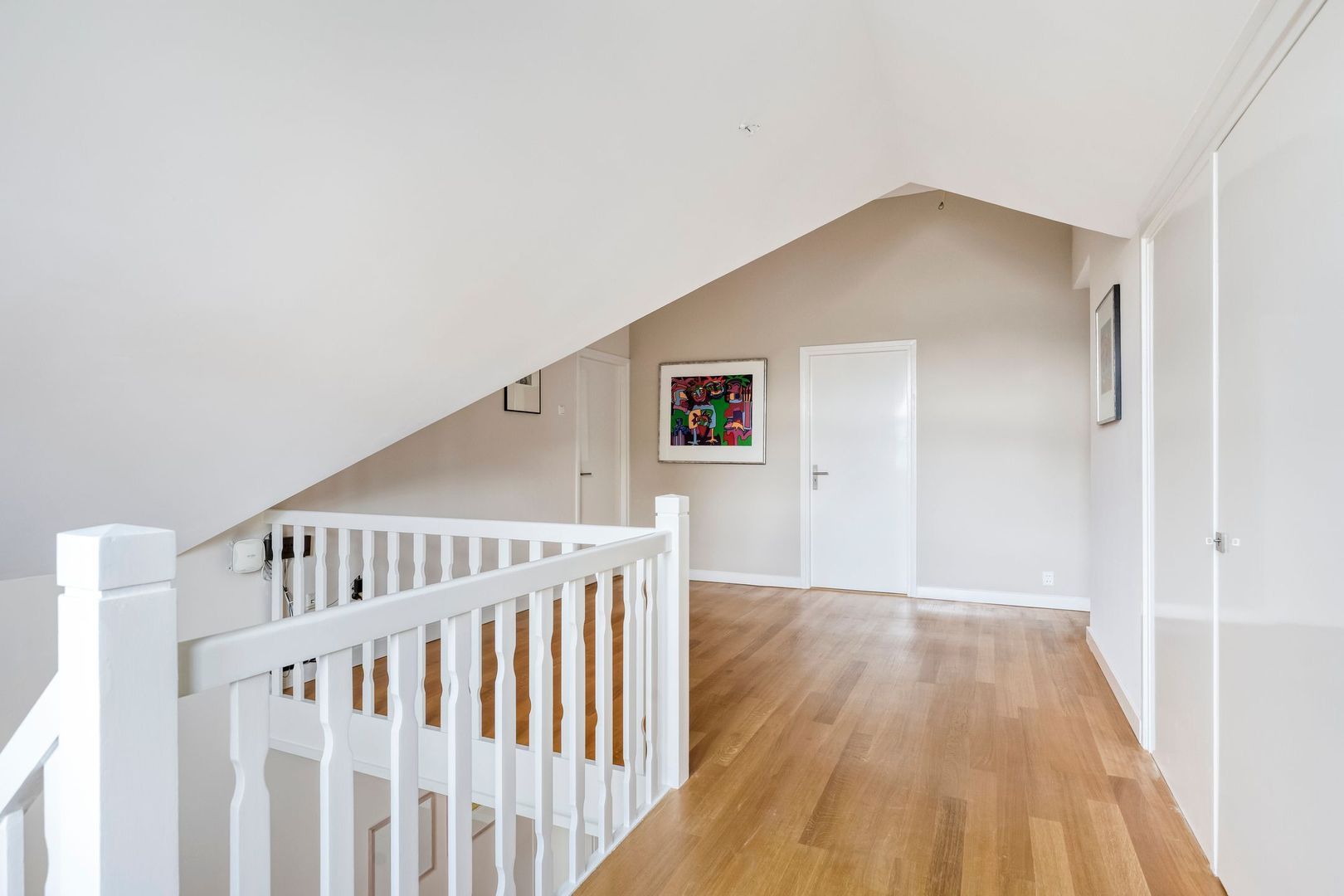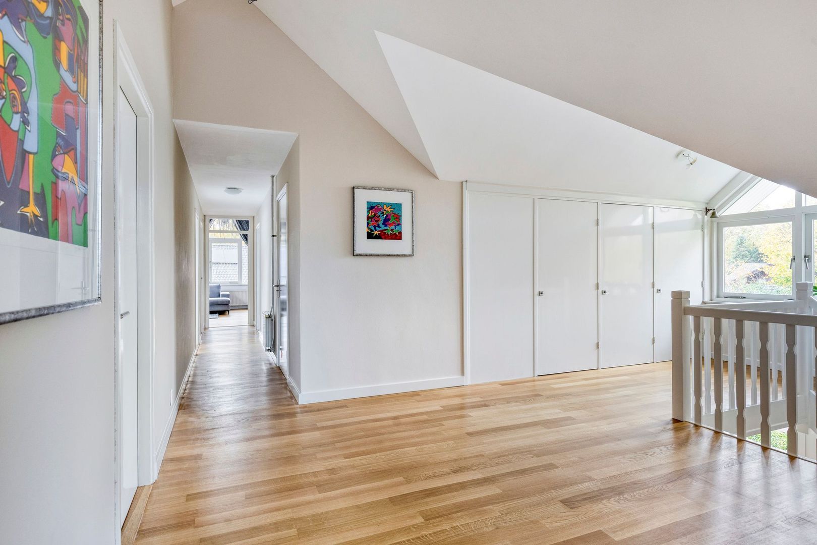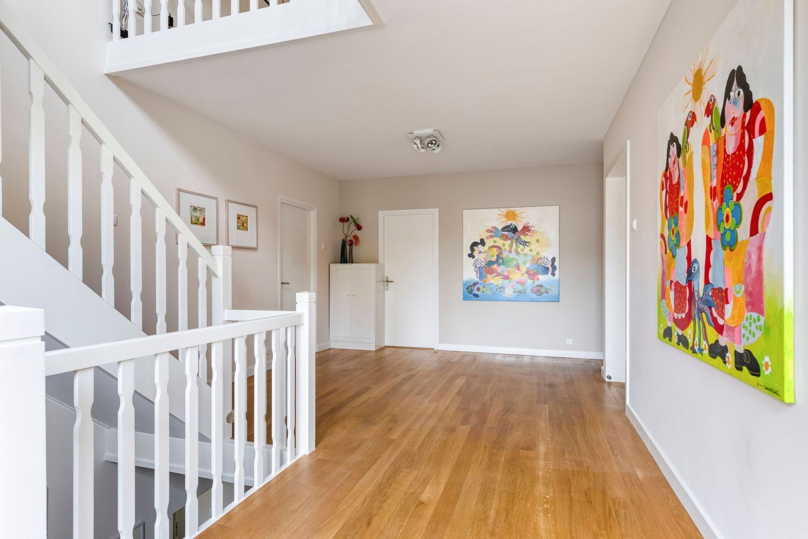Ruime overloop met parketvloer, ca. 12-13 m².