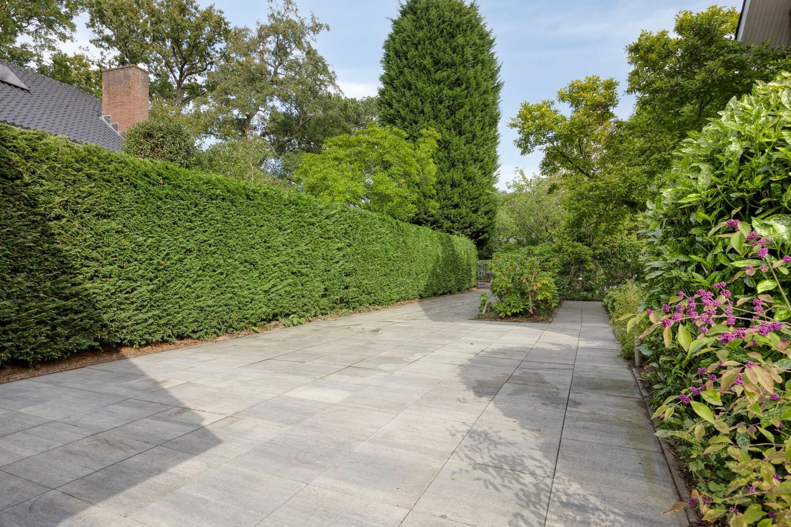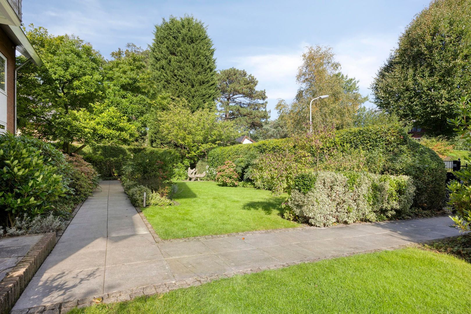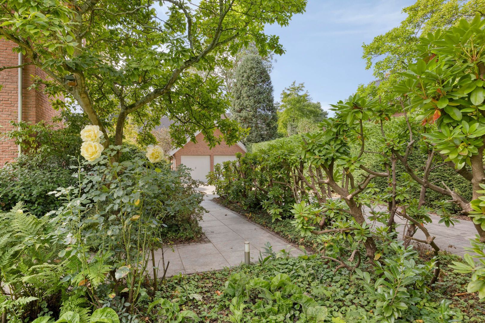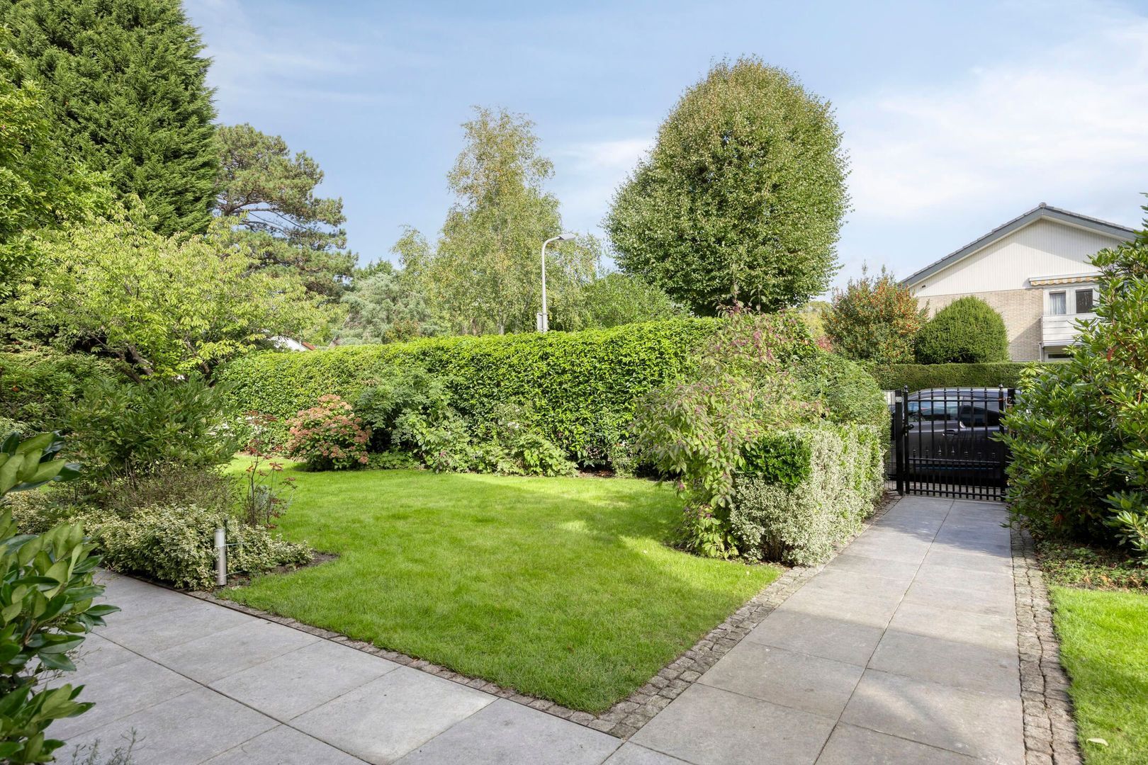 Fraaie tuin rondom, afgesloten met elektrisch bedienbare toegangspoort.