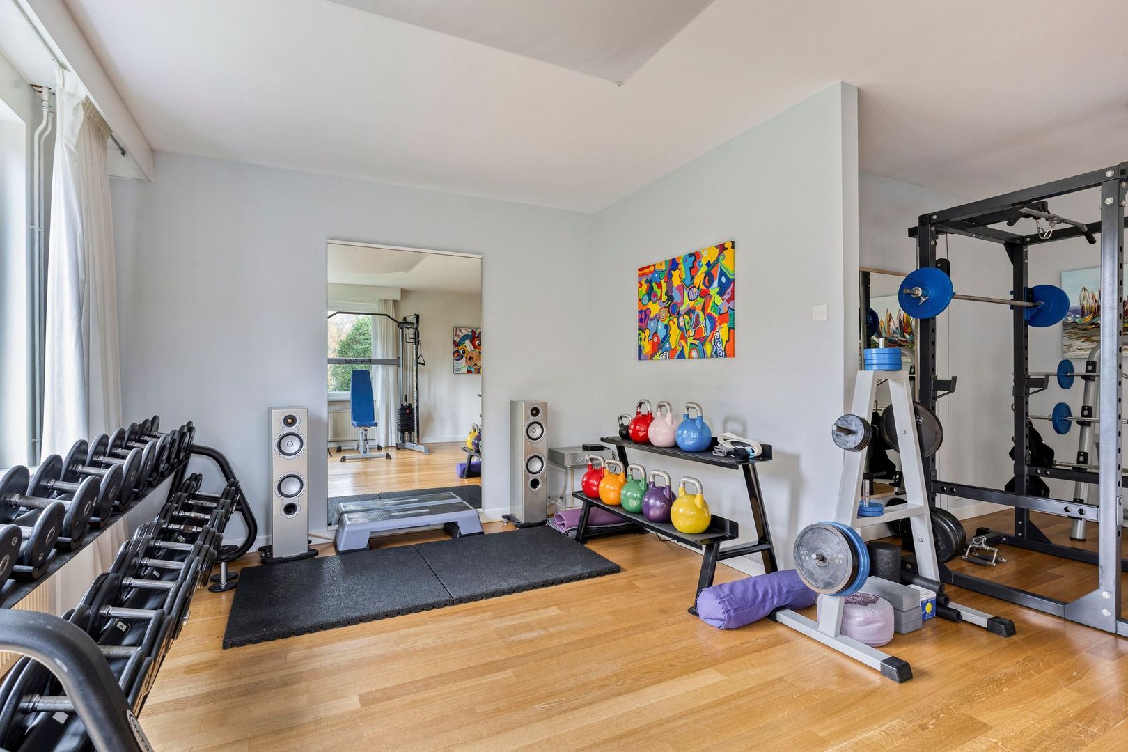 Slaapkamer 2: in gebruik als sportruimte, met openslaande deuren naar balkon.